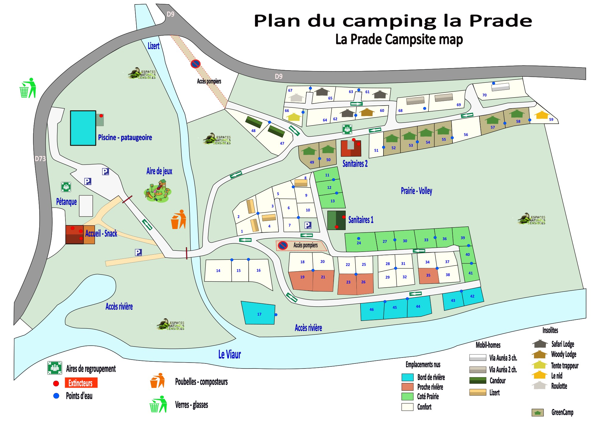 Niché dans un écrin de verdure en bord de rivière, sur 6 hectares de terrain, notre camping la Prade (“pré” en occitan) vous offre un séjour en harmonie avec la nature pour des moments simples et authentiques. Dès votre arrivée, vous serez séduit par nos vastes emplacements ombragés, parfaits pour installer votre tente, caravane, van ou camping-car.